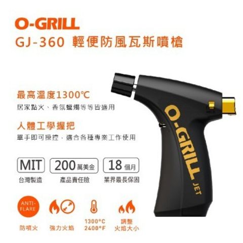 O-Gril GT-360 輕便型防風瓦斯噴槍 台灣精品 保固18個月 可加購補充用瓦斯【手牽手露營生活館】
