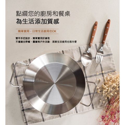 【手牽手露營生活館】KAZMI KZM 304不鏽鋼雙耳圓盤 戶外鍋具 露營 野炊