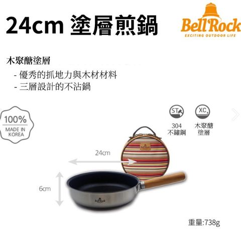 【手牽手露營生活館】BellRock24公分平底鍋 (可拆柄) 韓國製廚具第一品牌 不銹鋼