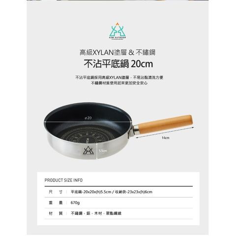 KAZMI KZM 不沾平底鍋 20cm 煎鍋 【手牽手露營生活館】不沾鍋 炒鍋 戶外鍋具 露營 野炊