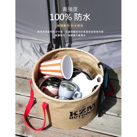 【手牽手露營生活館】KAZMI KZM 手提折疊水桶 洗碗籃 折疊收納 露營 戶外用品