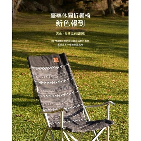 【手牽手露營生活館】KAZMI KZM 彩繪民族風豪華休閒椅(黑色)