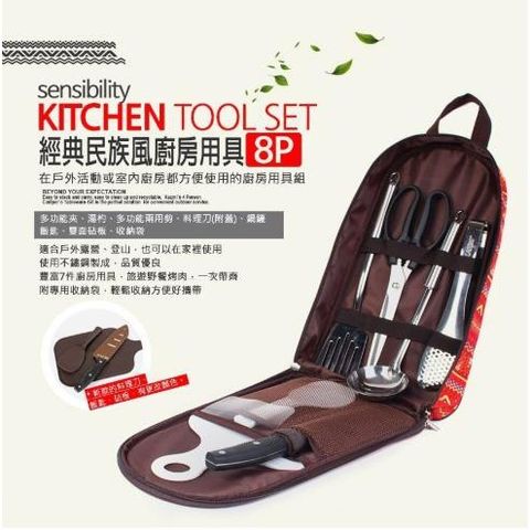 【手牽手露營生活館】KAZMI 經典民族風廚房用具8件組/野外調理組/野炊/烤肉/露營/戶外